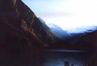 Wer bei seinem Alberta-Trip Lake Louise besucht, sollte entweder die Gabe haben, sich unter vielen Menschen so richtig wohl zu fühlen, oder über ein unerschütterliches Potential an Toleranz verfügen (ganz nach dem Motto: ich kann es den anderen tausend Leuten nicht verübeln, daß sie hier sind, mir gefällt es ja auch ganz gut). Zu allererst muß man natürlich einen Parkplatz ergattern und das selbst in der Nachsaison, Ende September, ein nerviges Glücksspiel. Aber nicht verzagen, denn der milchig türkis-blau schimmernde Lake Louise mit dem riesigen Victoria-Gletscher auf der einen und dem riesigen Schloßhotel auf der anderen Seeseite, umrahmt von einer dramatischen Berglandschaft, entschädigt für so manche, auf dem Parkplatz gedrehte Runde.