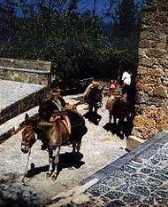 Von hier aus blickt man auf das grün schimmernde Wasser der malerischen Buchten, die die Stadt einrahmen. Leider sind die Sandstrände rund um Lindos sehr überlaufen. Jetzt heißt es bei unserer Inselrundfahrt wieder zurück zur Natur. Wir fahren zu einem kühlen Waldgebiet, nach Epta Piges. |